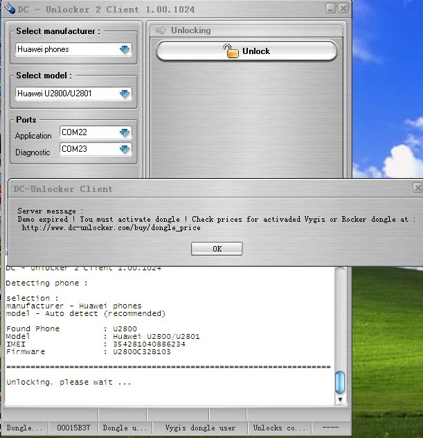 This dongle never had dc-unlocker activation. If you want to use dc-unlocker with this dongle you need to buy dc-unlocker activation. Activation you can buy here: https://www.dc-unlocker.com/buy