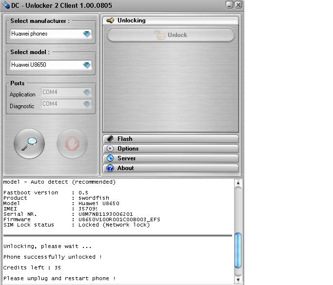 i am using dc unlocker with vygis box, unlocked u8650 but took 15 credits, please dc unlocker support explain reason...???
