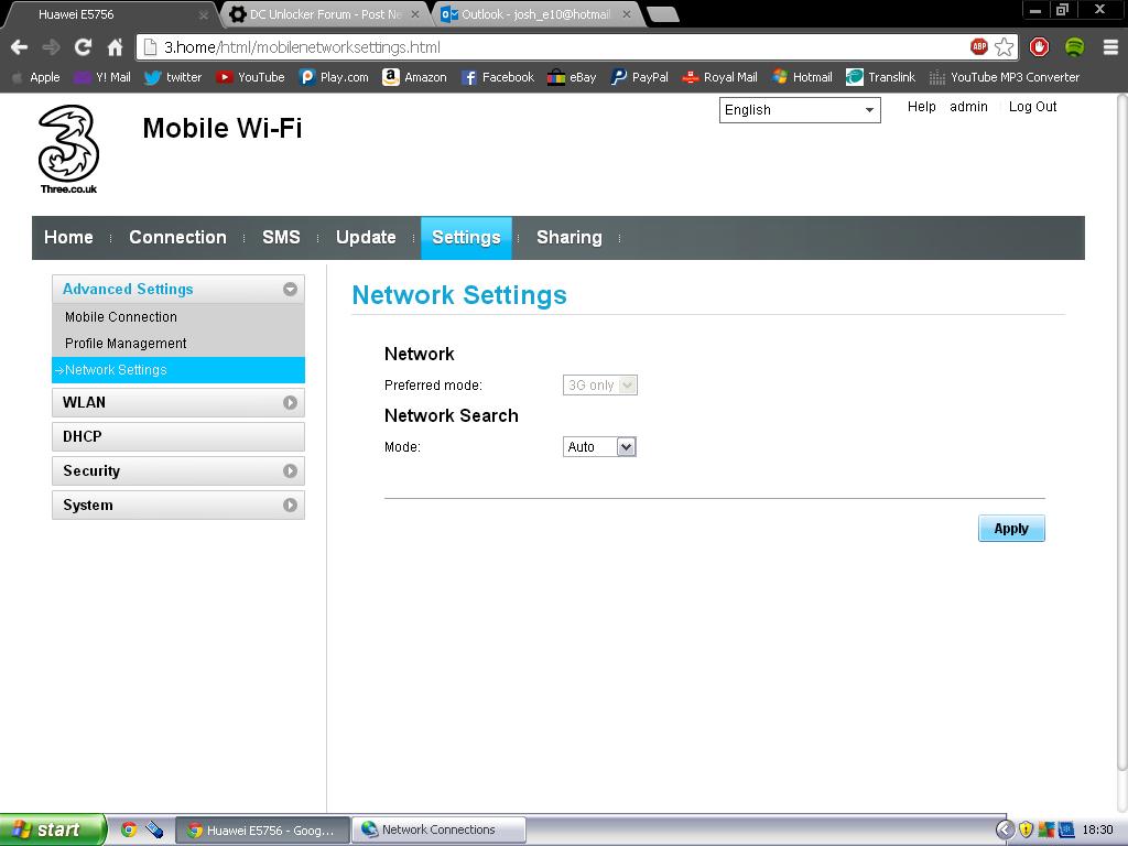 First time posting here, but I need a bit of help. I bought a Huawei E5756 from 3 UK to unlock for another network. The unlocking went grand through DC Unlocker, but now when I go into the mifi's settings (192.168.0.1) I try to select the preferred network mode to 2G + 3G but it's blurred out saying "3G Only". Is there anyway I can set it to both? This is with the 3 software on it, and there is NO WHERE on the internet that has any information on debranding it! The mifi works grand with a EE sim that picks up full 3G, but there is no 3G on Vodafone where I live so the mifi will not pick up any signal.