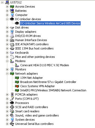 5) At this point the card is not more visible under Modems nor under Network Adapters, nor under Universal Serial Bus controllers. It see it only under Dc-Unlocker devices.