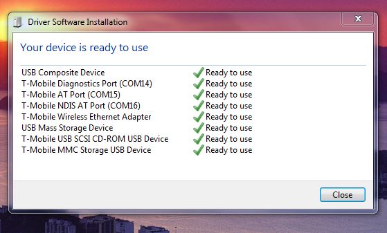 As soon as I connect the modem it installs the T-Mobile CD & MMC storage USB drivers. When I uninstall these, there is no longer any mention of the modem (T-Mobile or anything else) in device manager, even though I previously did a clean install of your drivers. How can we be sure that your driver has been installed?
