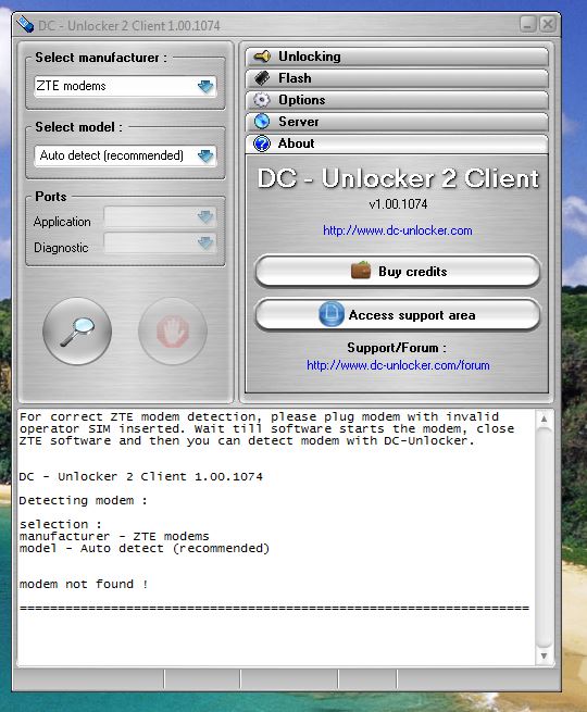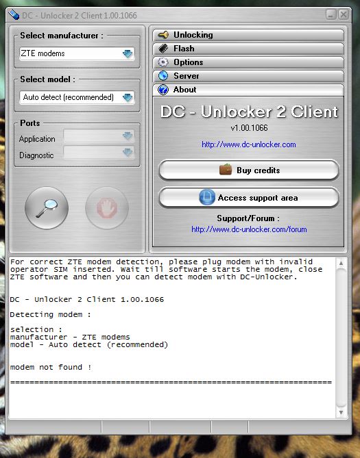 In auto mode it says "modem not found" in manual mode it says "sorry, this modem not supported".